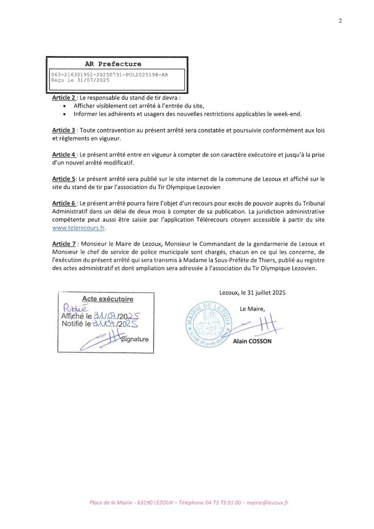 Arrêté municipal - Restriction des horaires de tirs les samedi et dimanche